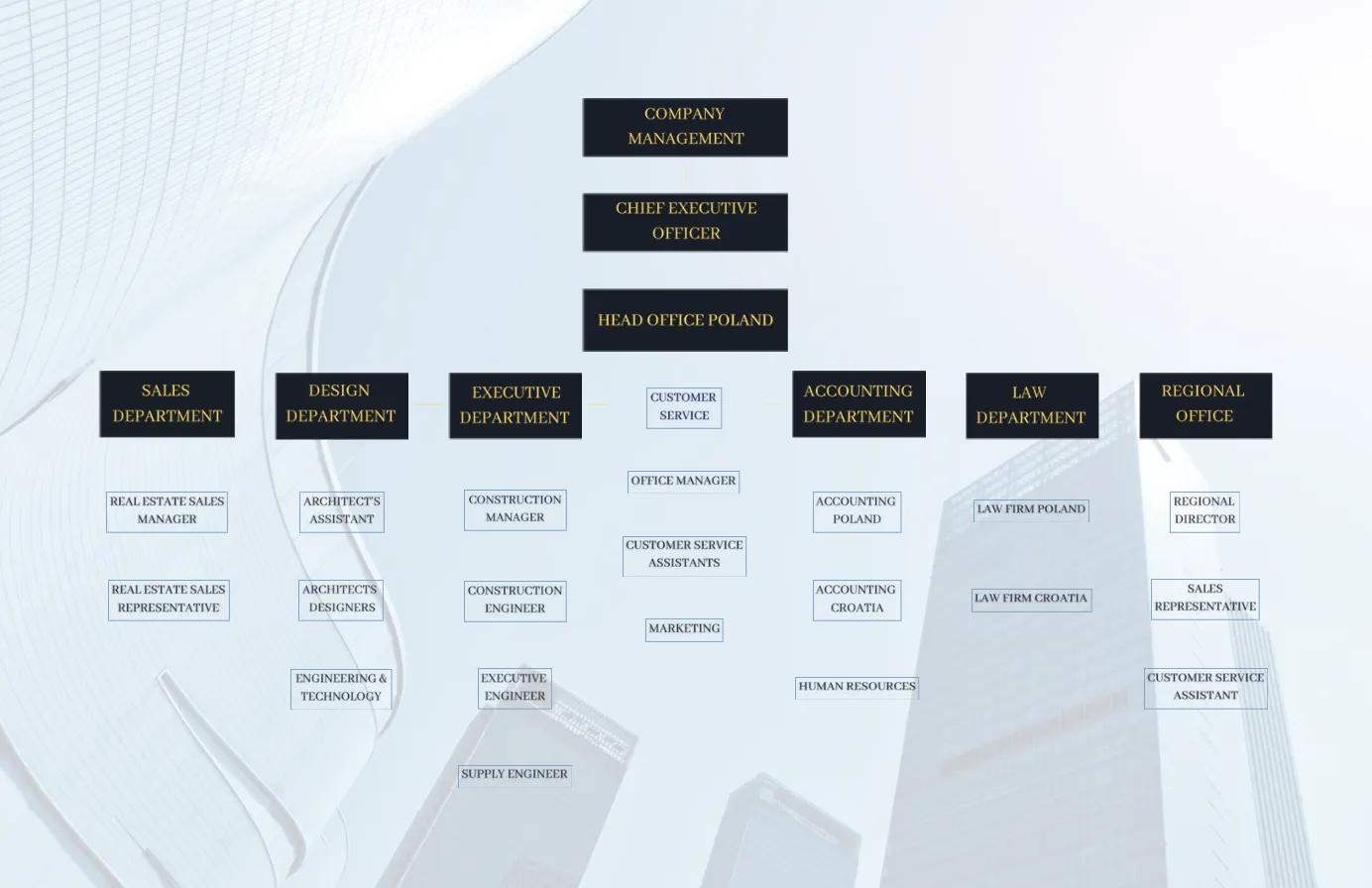 Naszą misją jest stworzenie nowoczesnej, sprawnie i efektywnie działającej grupy firm ukierunkowanych na budownictwo mieszkaniowe i rekreacyjne oparte na nowoczesnych rozwiązaniach, ekologicznych materiałach, estetyce wnętrz i inteligentnym zarządzaniu. Wraz z zespołem specjalistów chcemy zapewnić naszym klientom i inwestorom kompleksową obsługę na najwyższym poziomie.